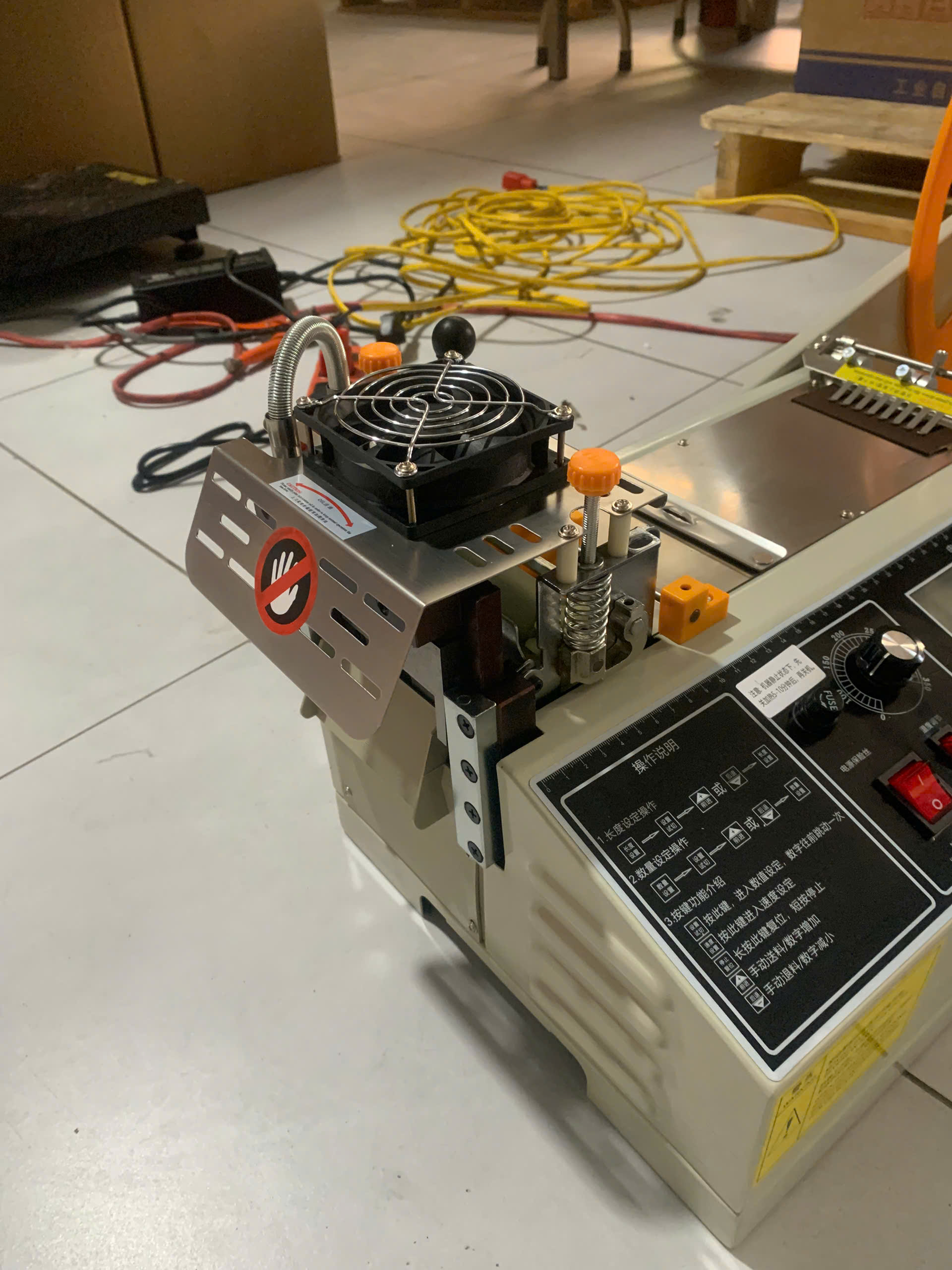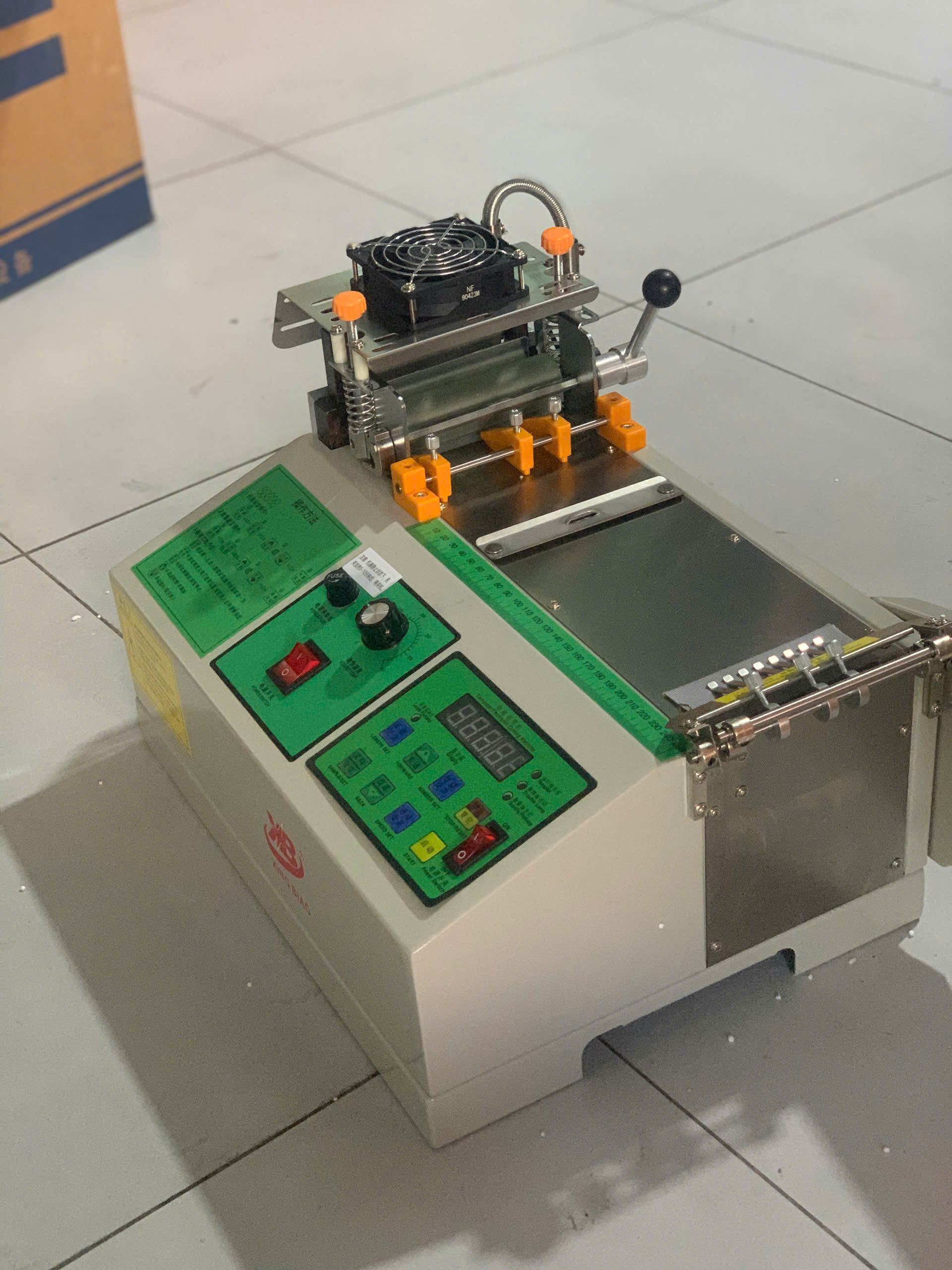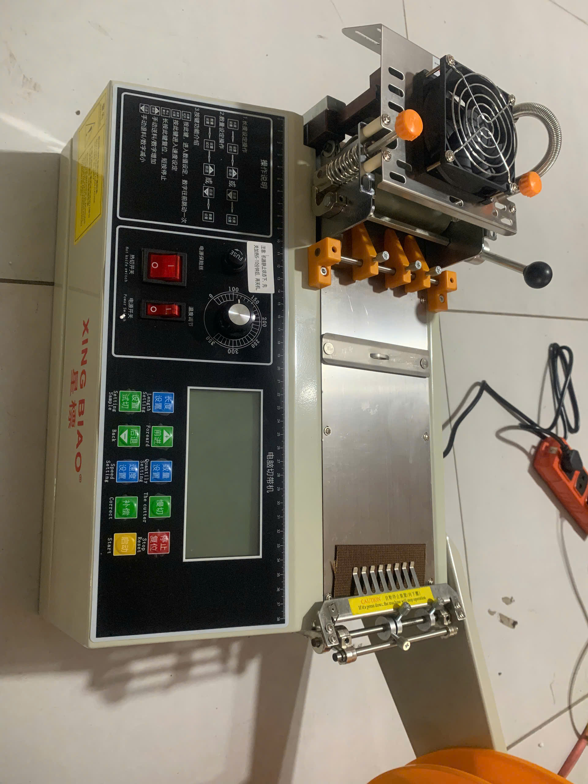 Lưỡi cắt của máy có thể làm nóng trước và nhiệt độ được điều chỉnh phù hợp với từng loại vật liệu khác nhau, đặc biệt thích hợp để cắt các loại dây đai nylon và dây đai nhựa. Ngoài ra, lưỡi cắt còn có chức năng tự động điều chỉnh áp suất, giúp tăng độ bền của sản phẩm cắt. Máy này có thể cắt nhiều loại vật liệu khác nhau mà không gây cháy hoặc làm biến dạng sản phẩm.